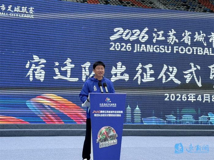 (速新闻记者 王艳珅 郭斌)4月8日,2026江苏省城市足球联赛(以下简称“苏超”)宿迁队出征仪式现场,除了整装待发的球队队员,热情澎湃的球迷方阵同样备受瞩目。宿迁市球迷会负责人徐金龙登台发言,代表全体宿迁球迷许下承诺:将以最饱满的热情、最文明的观赛举止,做球队最坚实的后盾,与宿迁队并肩作战、共创佳绩。
